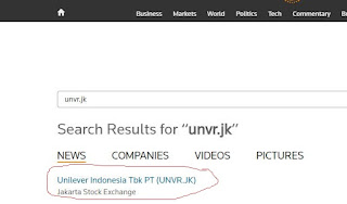 Misalnya anda ingin mencari beta saham Unilever. Maka anda bisa ketikkan UNVR.JK. Maka akan muncul tampilan seperti dibawah ini: